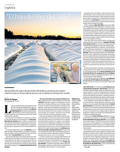 Assim nasceu a ideia-mãe do silo-bolsa. Um sistema de armazenagem econômico e provisório. Hoje existem várias propostas no mercado, mas a original continua sendo aquela da Ipesa, empresa de Zacarías Klas, cujo desaparecimento físico comoveu todos no setor.